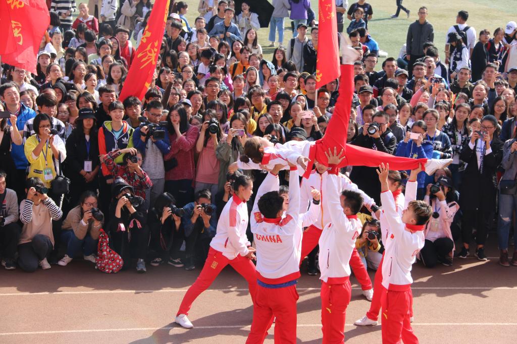 大会第一项是由体育学院健美操队带来的健美操表演。他们曾在国际比赛中夺得两项亚军。精彩的表演结束后,副总裁判长用慷慨激昂的陈词宣读了各比赛最终成绩。经过两天的激烈角逐,我院获得了学生团体奖第六名,以80.5分获得了女子总分第五名,以34分获得了男子组第八名,接着校长助理宣布了体育道德风尚奖名单。之后终于迎来了最激动人心的颁奖仪式。同学们热情高涨、击鼓鸣金,我院运动员们登上颁奖台领取属于音院和自己的荣耀,这份荣耀是光彩夺目的,更是功勋卓著的。而这也是我院精心组织,运动员奋勇争先、顽强拼搏的结果,展示了我院同心同德、团结进取的精神风貌。大会最后,副校长夏立新宣布我校2018年运动会圆满闭幕!