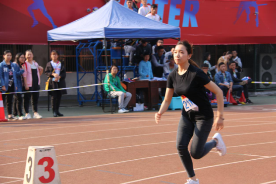 最后一个上场的是王颖同学,作为一个舞蹈生,她在赛道上奔驰的身影也仿佛在随风舞动一般轻盈敏捷。在耀眼的阳光下冲过终点,并取得了小组赛第二名的好成绩,也为今天的400米比赛画上了圆满的句号。