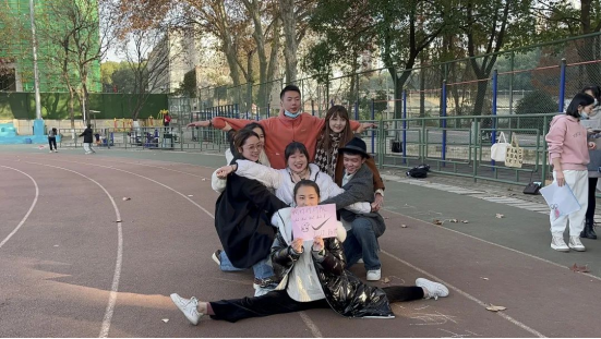 规则:大家需要全员站在这张纸上。所有人的两只脚不许接触地面,脚的任何部位(以及身体的任何部位)都不能接触地面,但是可以接触纸张,也可以悬空,保持10秒钟。