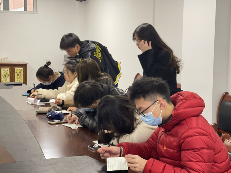 在邢荠文和孙子涵的指导与组织部其他成员的帮助下,新团员们仔细地填写完了入团志愿书和团员证。