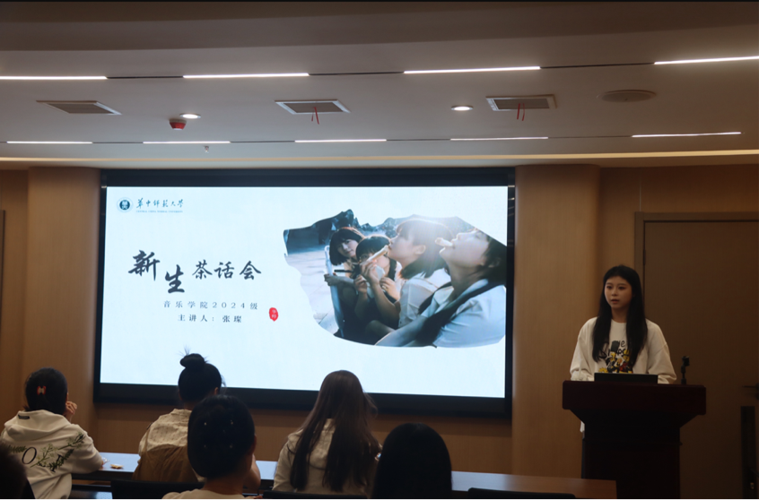 茶话会伊始,张璨代表院团委学生会对到会的新生们表示了热烈的欢迎,并简要介绍了本次茶话会的目的和流程。随后,张璨从美食推荐与游玩攻略、校园学习生活指南等方面奉上了来自学长学姐的倾情建议。在互动答疑环节中,新生们对今后的大学学习与生活有了更多的认识与更好的规划,欢声笑语充盈着学院多功能1号会议室。