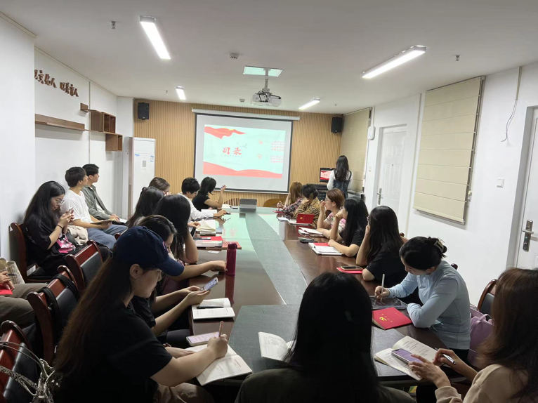 2023年9月28日中午,音乐学院学术型硕士研究生党支部召开支部会议,由吴文劼同志莅临指导,陈悦同志主持会议。会议活动如下:由郑思炜领学深入领会学校学习贯彻习近平新时代中国特色社会主义思想主题教育总结会议精神;由应乐领学中央学习贯彻习近平新时代中国特色社会主义思想主题教育第一批总结暨第二批部署会议精神;由邓诗楠领学贯彻习近平总书记教师节重要指示精神;党支部委员换届选举会议。