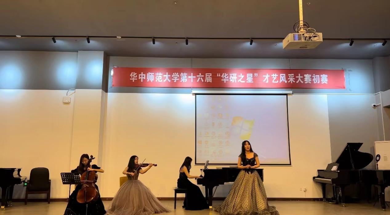 2023年3月19日下午,第十六届“华研之星”才艺风采大赛初赛在音乐学院727拉开了序幕。本次大赛由共青团华中师范大学委员会和华中师范大学研究生会主办,由音乐学院研究生会、人工智能教育学部研究生会、马克思主义学院研究生会、物理科学与技术学院研究生会承办,由教育学院研究生会、心理学院研究生会、文学院研究生会、城市与环境科学学院研究生会协办。音乐学院共有四个节目参加本次本赛,分别是声乐节目《诀爱》、《虞美人听雨》,器乐类节目四重奏《迎接》、《巴赫d小调双小提琴协奏曲》。