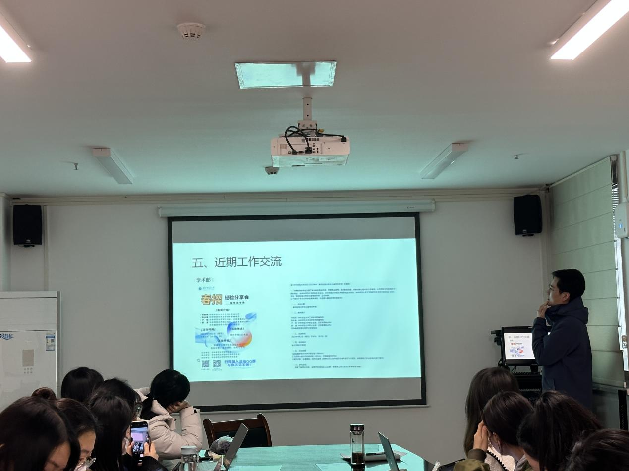 2023年3月22日中午,音乐学院研究生会2022—2023学年春季学期工作例会于317教室顺利召开。院研究生会指导老师陈龚泽祖、研会主席团、各部门负责人及学院研究生同学代表参加本次会议。会议由院研究生会指导老师陈龚泽祖主持。会议内容包括:研究生思政系列活动之“陈导的训练营”(第四期)暨团学骨干业务培训;各部门近期工作交流。最后,陈龚泽祖对相关工作提出建议与要求,研会各成员素质能力提升,牢记“全心全意服务同学”的宗旨;希望各部门之间加强合作,积极配合,争取将“桂音悦声”师生音乐会办精、办好,为华中师范大学音乐学院交上一份完美的答卷。