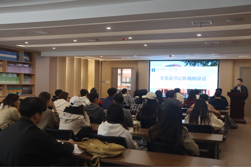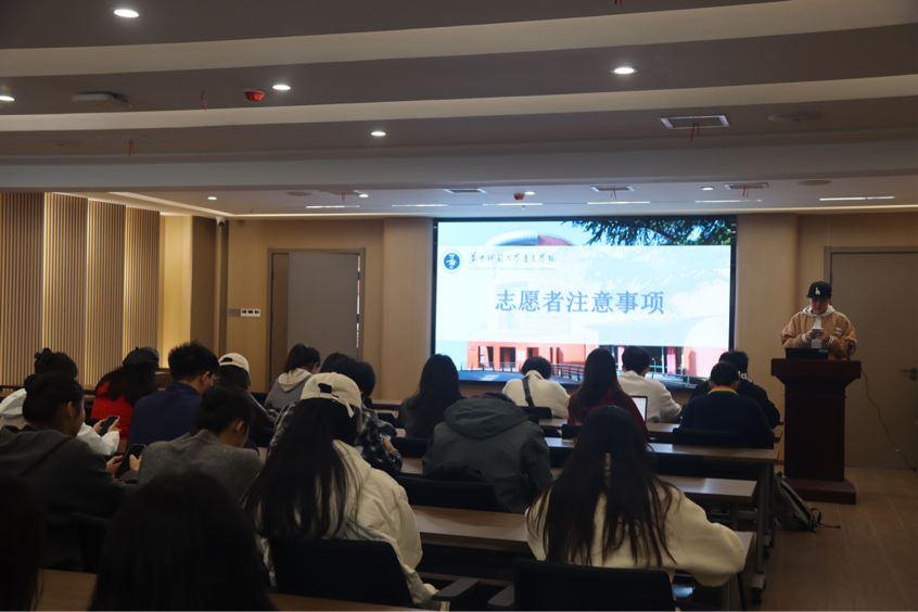 随后,我院23级本科生辅导员周灿灿、24级本科生辅导员严楚弘、团委副书记董煦仁、团委青年发展部负责人夏怡朗详细介绍了本次美育展演活动志愿者的工作分配情况,并带领大家前往大学生活动中心进行实地的考察。