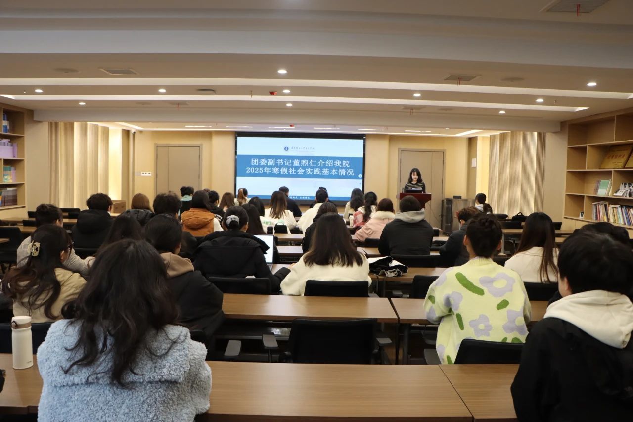 团委副书记董煦仁介绍基本情况,本次寒假社会活动我院共8支队伍共118人参加,涵盖“湖北省‘寒假学堂’爱心托管班”、“感谢恩师·你我同行”大型公益活动、寒假全国大学生“返家乡”社会实践以及“悦学习·跃青春”微团课大赛、华大青年寻访基层良师风范、央视春晚展演、湖北春晚展演等实践活动。