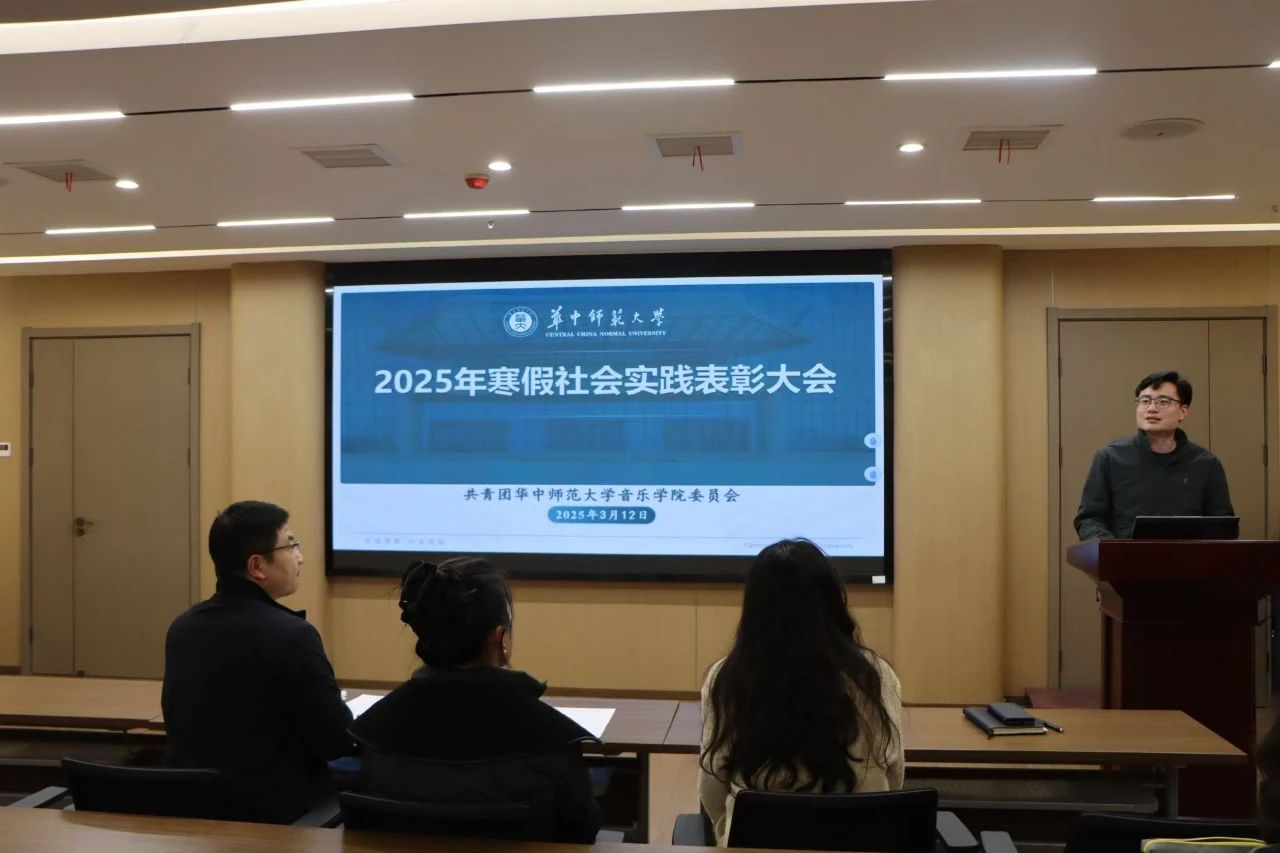 与会人员共同观看了音乐学院2025年寒假社会实践回顾视频,通过生动的画面和真实的记录中、所经历的点点滴滴和取得的丰硕成果,赢得了在场师生的阵阵掌声。