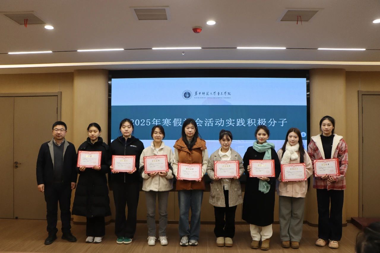 辅导员周灿灿、严楚弘为寒假社会实践优秀团队颁发荣誉证书