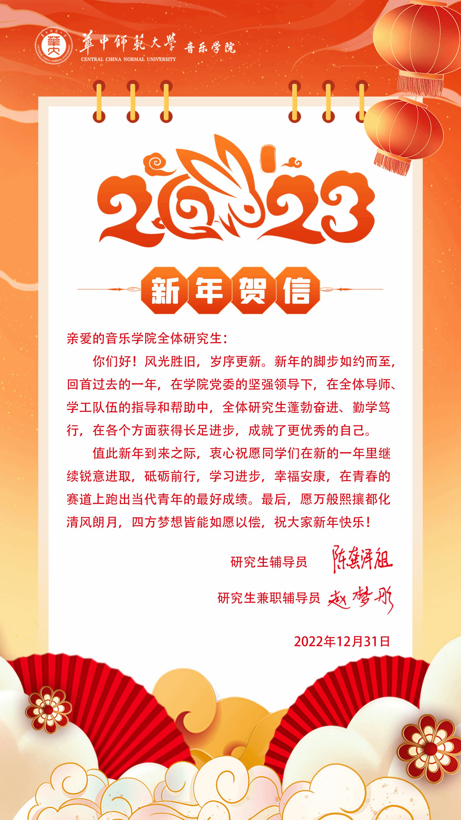2022年12月31日,婷婷春晖近,日月开新元。12月作为一年中的最后一个月,蕴含着沉淀与新生。2022年戛然而止,我们仍忙着生根发芽,继续向前奔跑。春光乍暖,不惧岁寒,立足新起点,共赴新征程。最后,祝愿全体师生及家长朋友元旦快乐、幸福平安、万事如意!