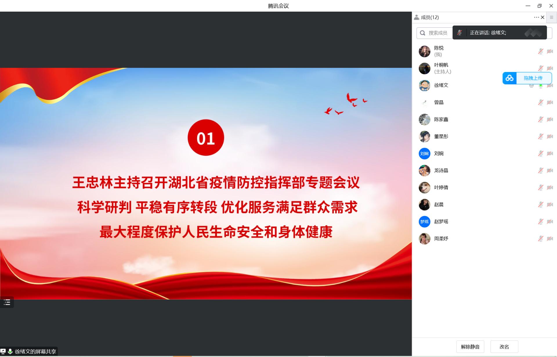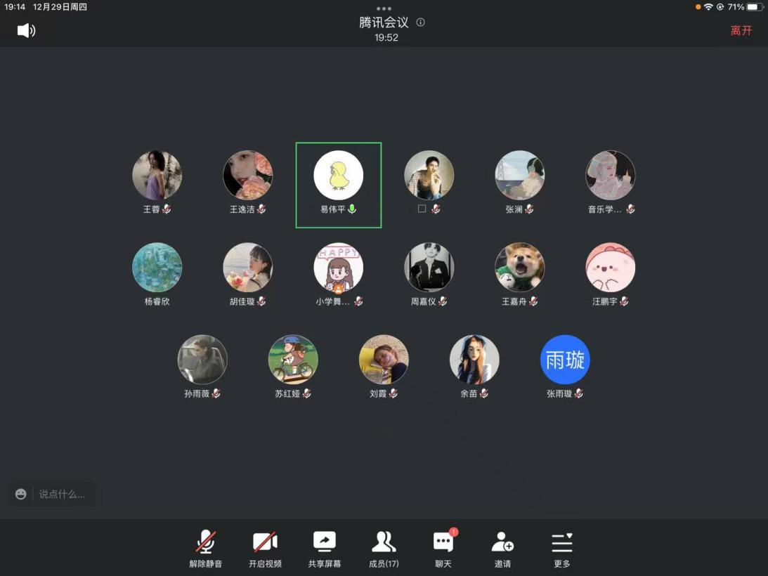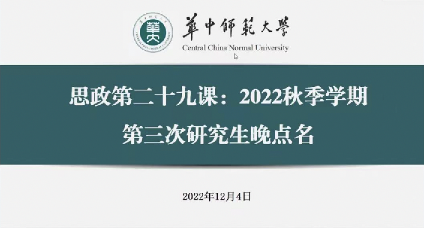 2022年12月4日,为更好地解决在疫情防控下每位学生在学习生活中遇到的问题,2022年秋季音乐学院研究生思政第二十九课在线上腾讯会议顺利进行。本次晚点名由研究生辅导员陈龚泽祖主持召开,大会内容主要包括日常疫情防控与请假事项要求、解决同学困惑三个事项。本次活动强化了各位研究生的疫情防控防范意识,并对同学们的心理健康发展等学生日常工作管理起到了积极作用。
