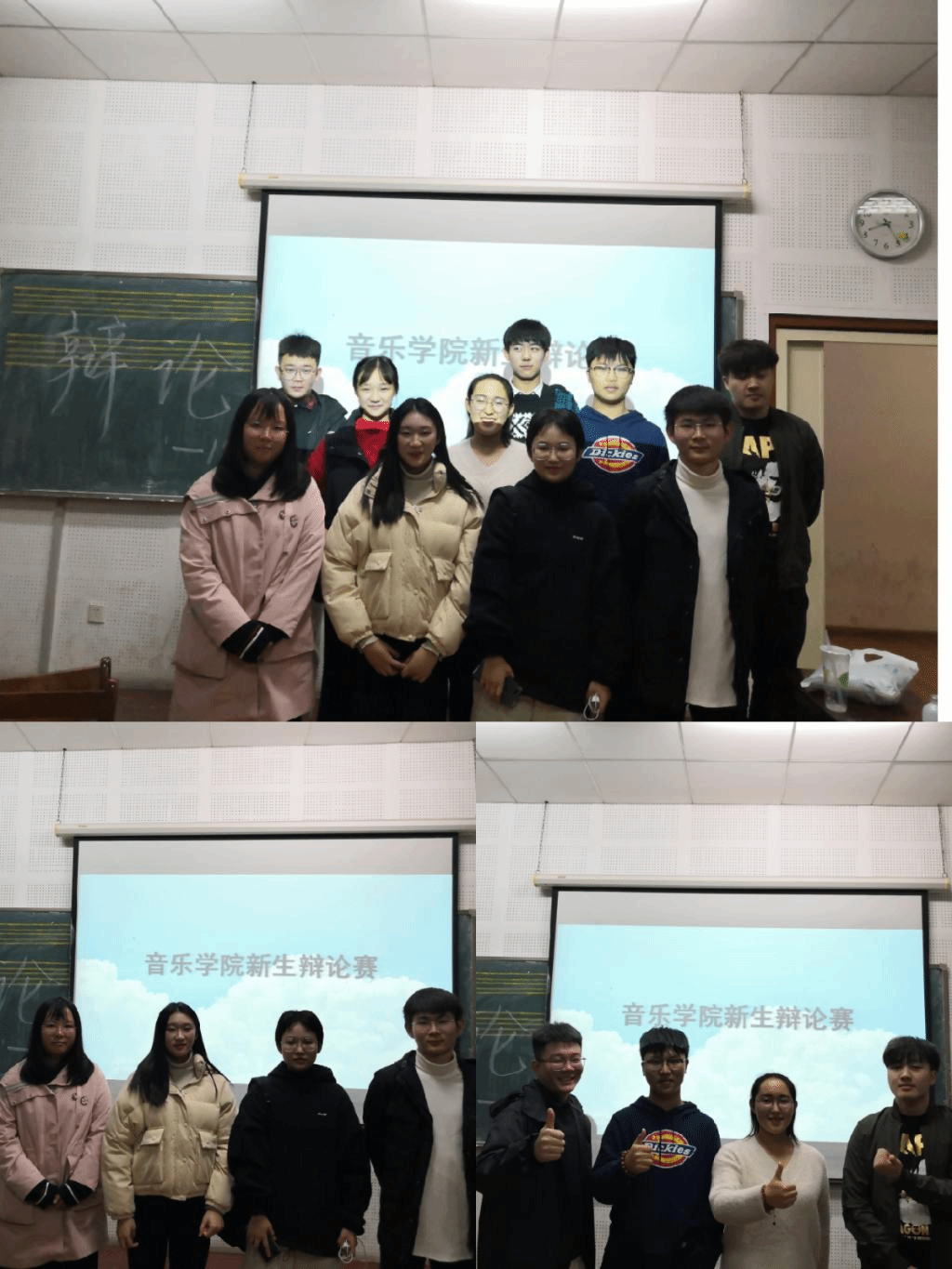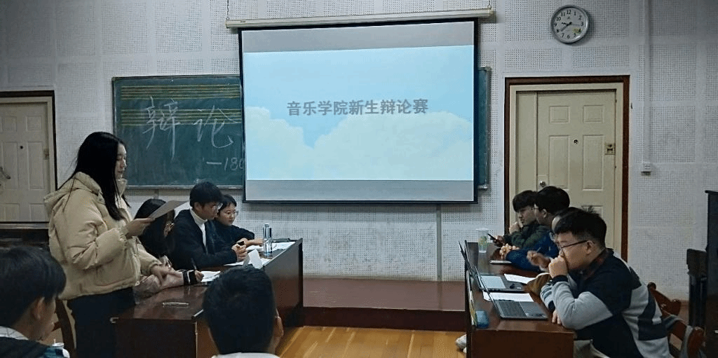 (通讯员:刘雅静)2018年11月23日晚19时30分,2018级新生辩论赛在音乐学院629教室举行。辩论赛由学生会副主席李韧杰主持,学术部部长孙震林、团委学生会权益部部长王雨昕、学术部成员刘雅静、院辩论赛队成员任皓宇担任评委,学术部副部长周慧心为裁判。1802班和1803班各派出四位同学参加此次辩论。