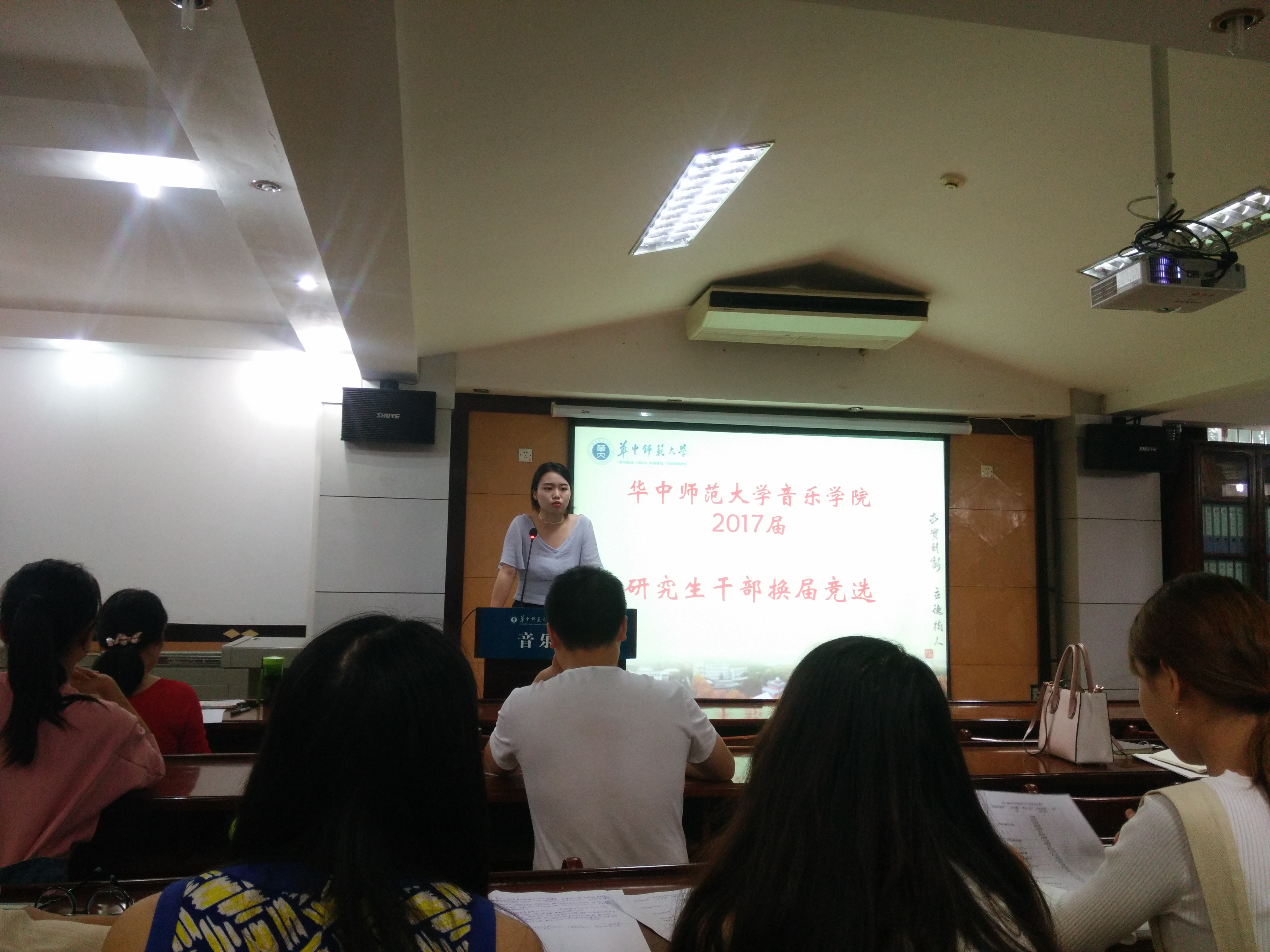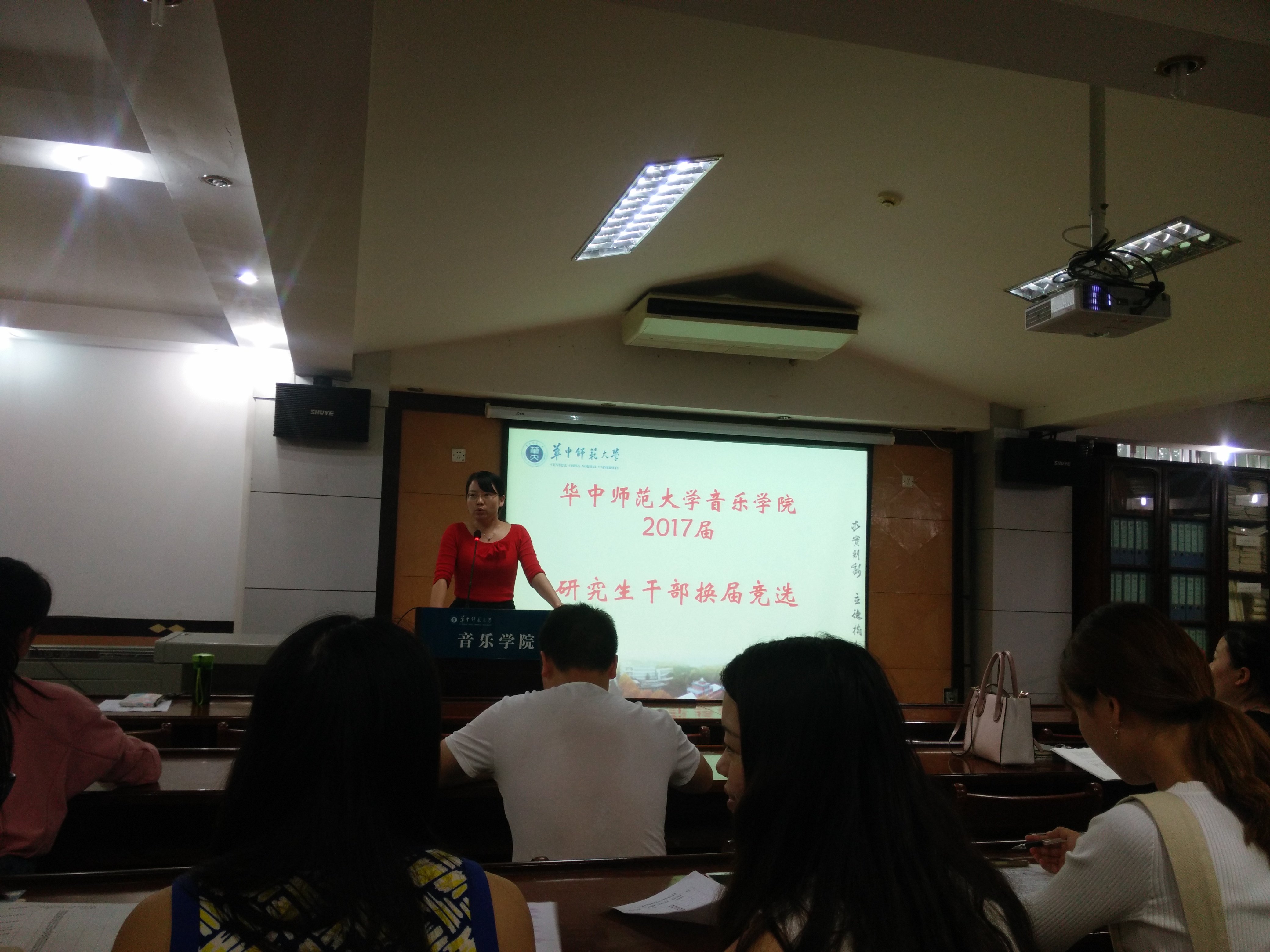 (新闻:陈文鹭 摄影:陈文鹭)2017年9月18日下午两点,音乐学院研究生于音乐学院323教室进行研究生会的换届选举工作。此次换届工作由研究生辅导员万红霞老师主持召开,参与人员为2015、2016级学生会成员及2017级全体新生。