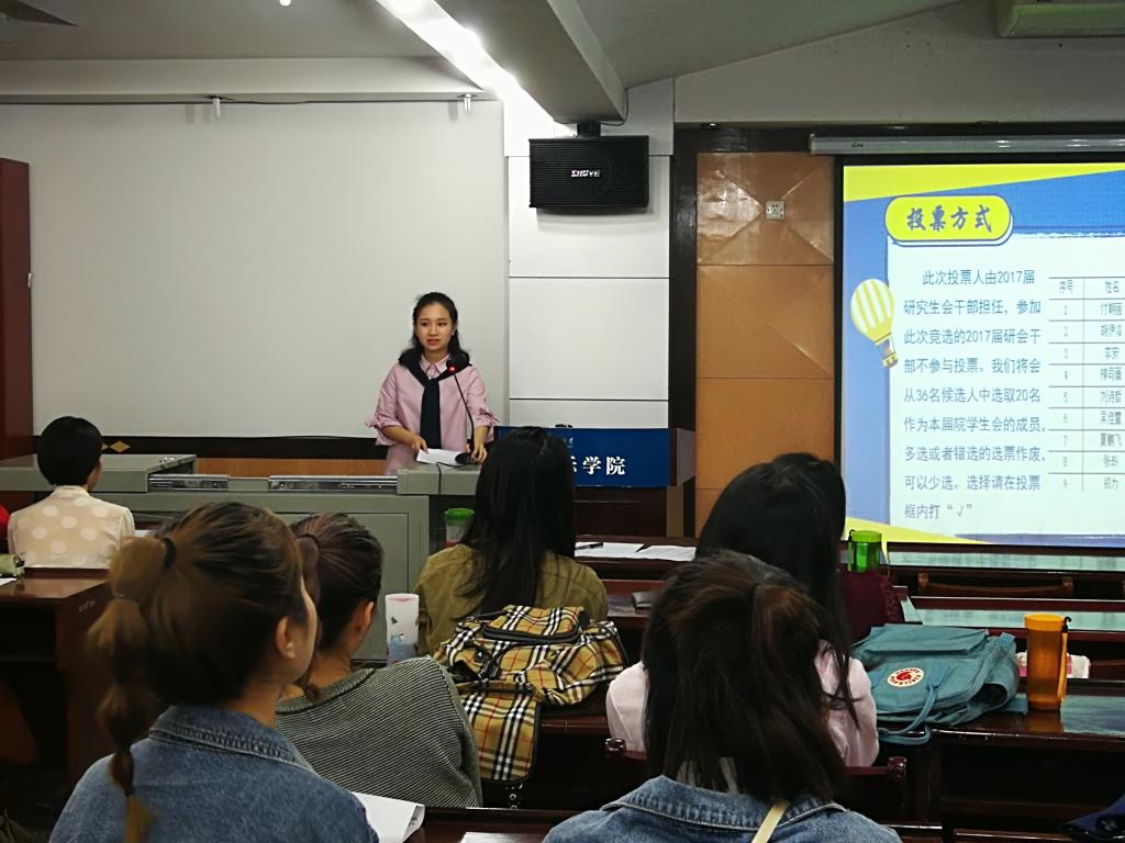 竞选大会共分为三个板块,分别为:院研究生学生会主席原思辰介绍本次竞选注意事项、竞选者发表竞选演说、民主投票选举。