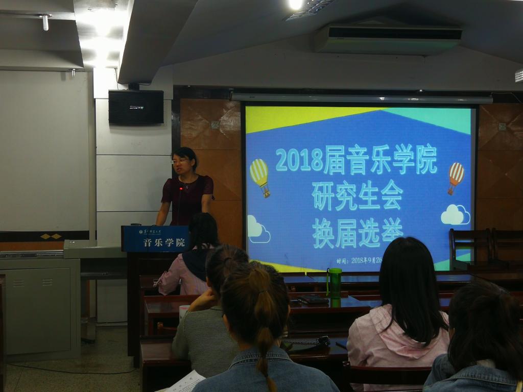 华中师范大学音乐学院2018届研究生会干部换届竞选大会于2018年9月26日上午10:00在大会议室顺利举行。音乐学院研究生辅导员万红霞老师出席了本次竞选大会;此外,出席本次竞选大会的成员还包括音乐学院2017届研究生会成员。大会由2017届研究生会主席原思辰主持。