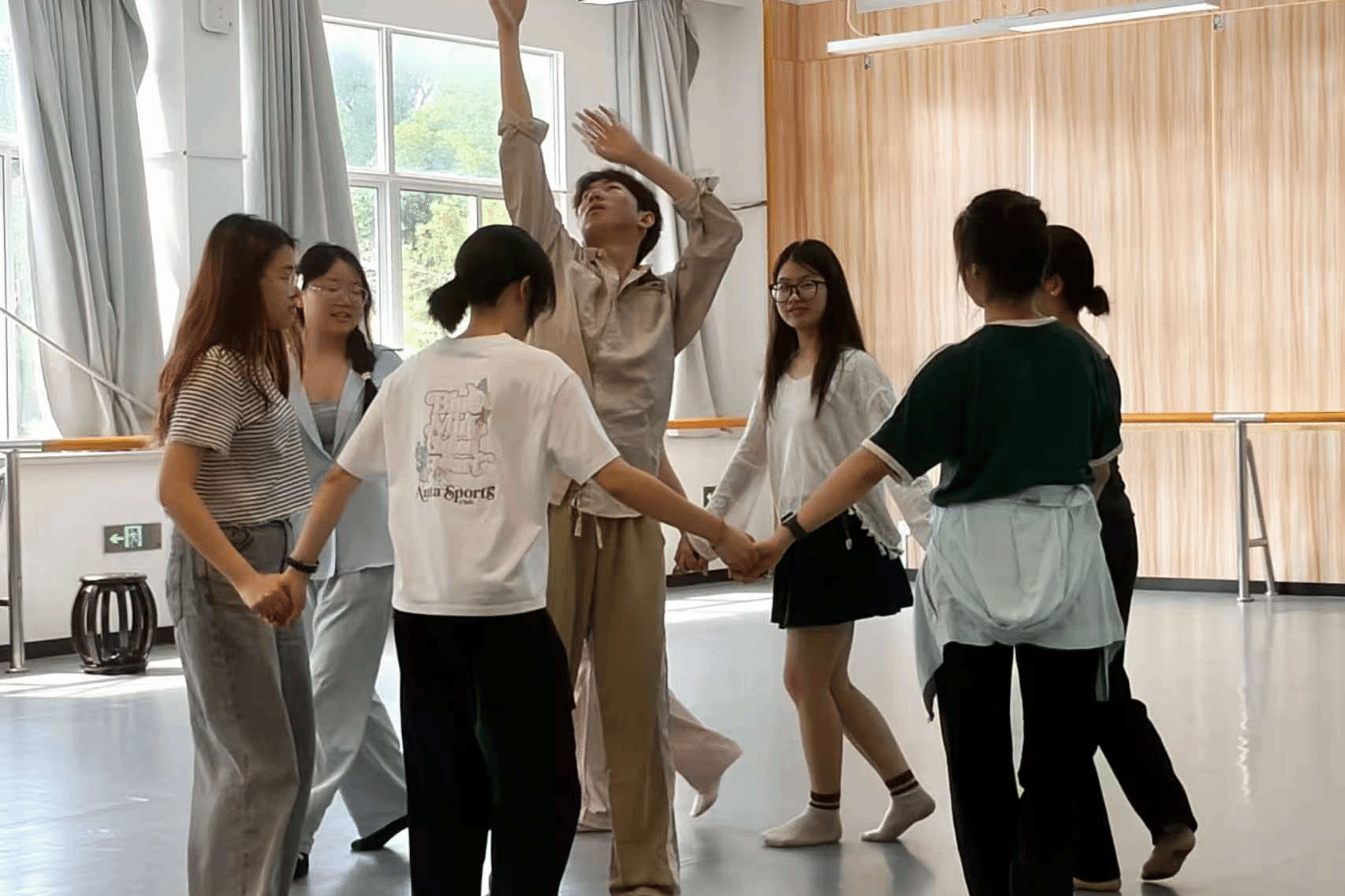 在欢快活跃的音乐环绕下,镜像模仿环节登场。参与者们跟随指定对象同步动作,大家在欢声笑语中放下戒备,沉浸式感受轻松氛围。动作重复间,同学们内心关于期末考试、分数排名的纠葛与压力被抛到云端。