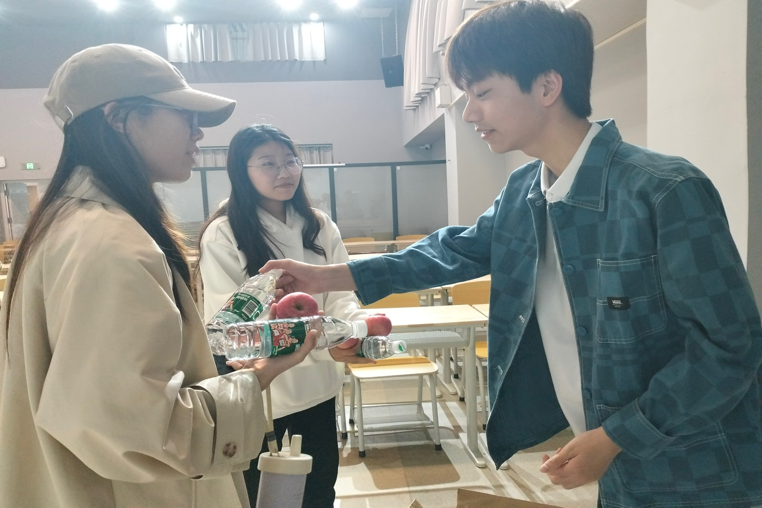 活动进入第三项:“雷锋之爱传递校园”。同学们一起准备了矿泉水、苹果、香蕉、柑橘等物资,在华师校园内发放给环卫工人、食堂阿姨、校车司机、门卫安保等辛勤劳作的校园工作人员。这一环节不仅让工作人员们感受到了来自音乐学院青年暖心爱的力量,也让支部成员们深刻体会到了帮助他人、常怀感恩的幸福源泉。