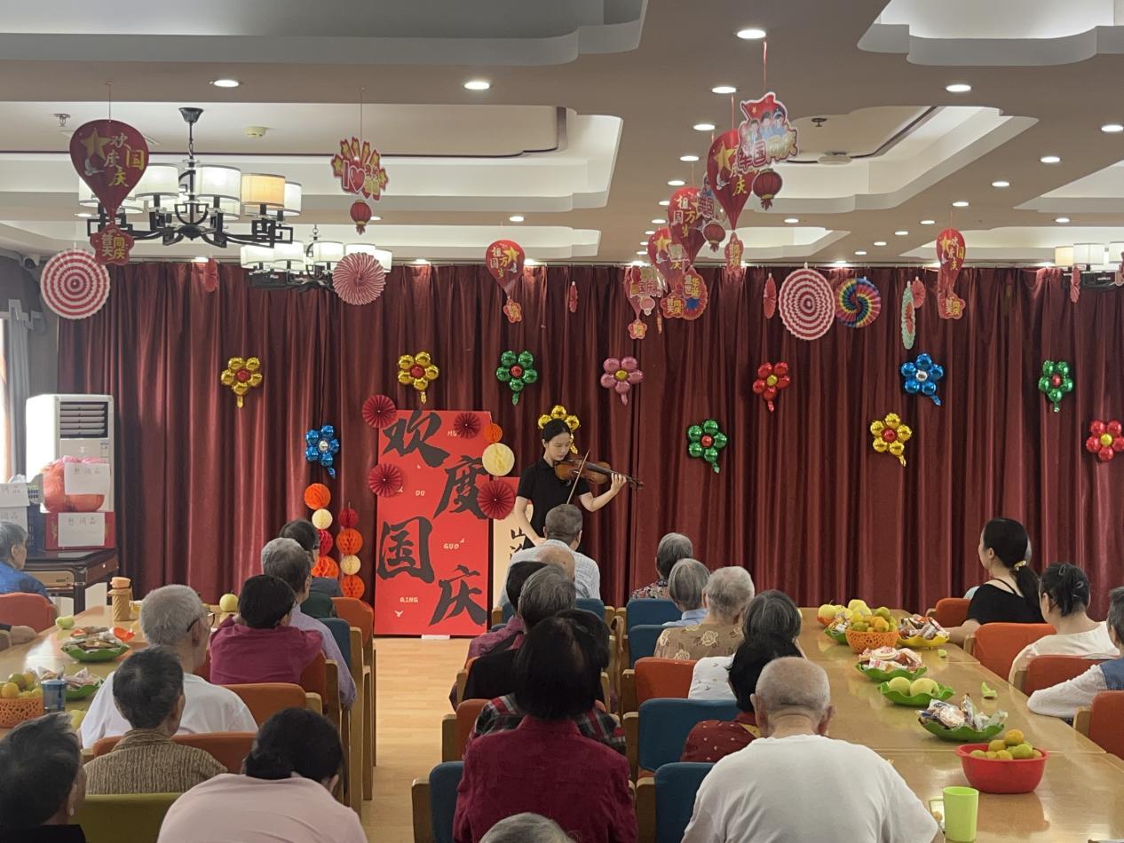 在国庆佳节来临之际,9月27日,我院青年志愿者协会“爱之音”圆梦服务队组织17名志愿者,在团委副书记董煦仁的带领下,前往康禾养老院开展志愿服务活动。志愿者们精心策划并呈现了一场精彩的文艺表演,为老人们带来了一段难忘的音乐盛宴,一起度过了美好的音乐时光,共同迎接国庆节的到来。