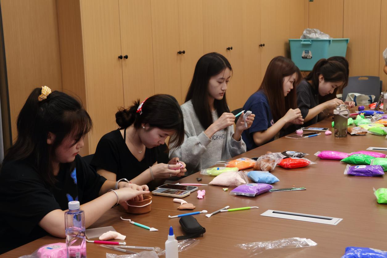 活动现场,同学们围坐在一起,将一块块彩色的粘土揉捏成各种形状。通过粘土创作,希望同学们能够在忙碌的学习生活之余,放松身心、缓解压力,收获平淡岁月里的小确幸。