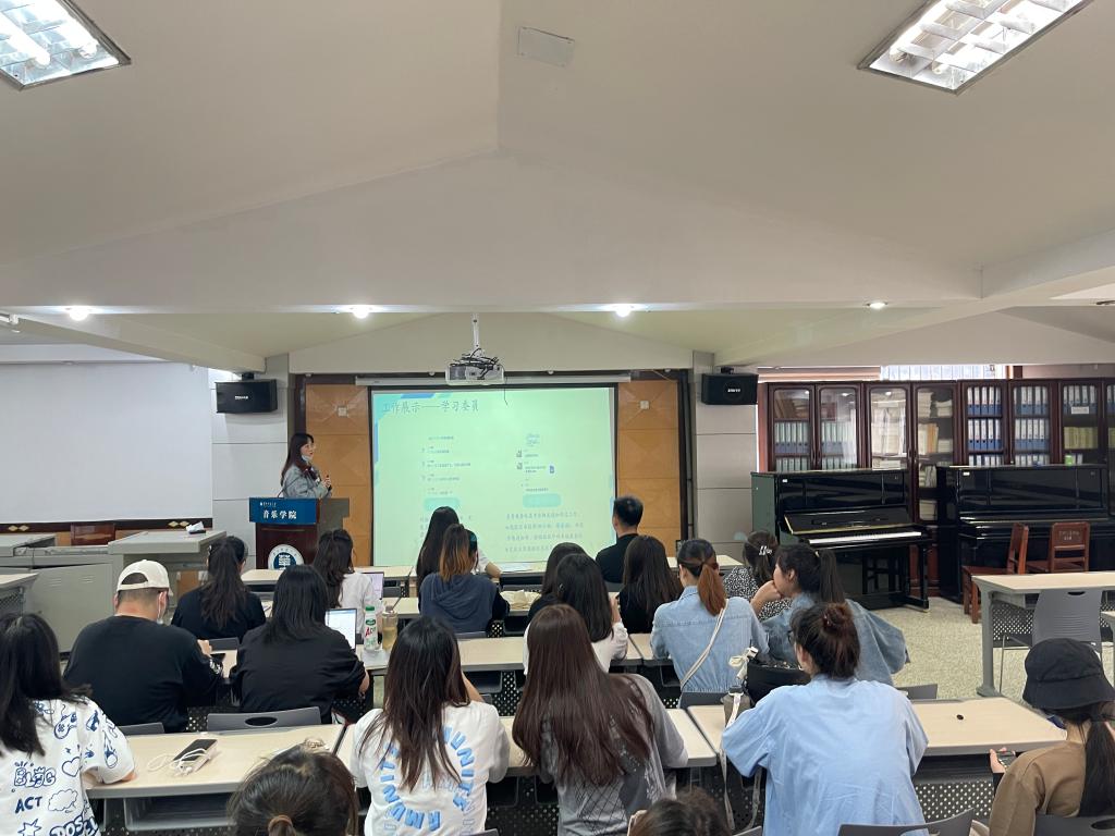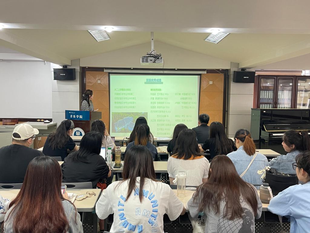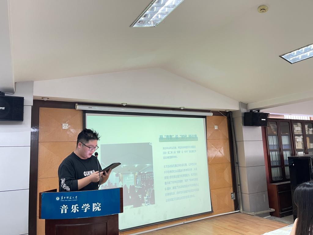 述职汇报结束后,翟子晴作总结发言。在从与班委交流时了解到的年级信息得基础上,寄予了三点希望:一是希望班委们能够创新团日活动的开展形式,不要局限在校内;二是针对钢琴和器乐专业的同学经常久坐的情况,希望同学们能够多开展和参加体育活动,练就健康的身体;三是希望大家能够继续开展有年级特色的辩论赛活动,将它变得常态化。