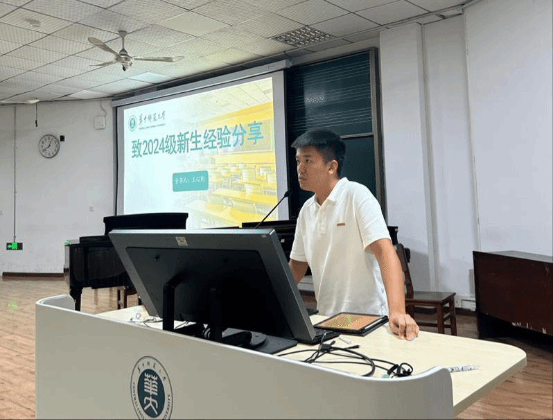 大会第二项,优秀学长学姐分享学习经验。首先,24级研究生王心衎分享了自己的考研心得。他提到,新生们要尽快适应大学环境,有任何生活和学习上的问题一定要跟老师及时沟通。他鼓励同学们珍惜大学时光,努力学习,争取获得更好的学习成果。同时,他也针对应届毕业生就业情况提醒新生们要珍惜时间,多学本领,为未来的职业生涯做好充分准备。