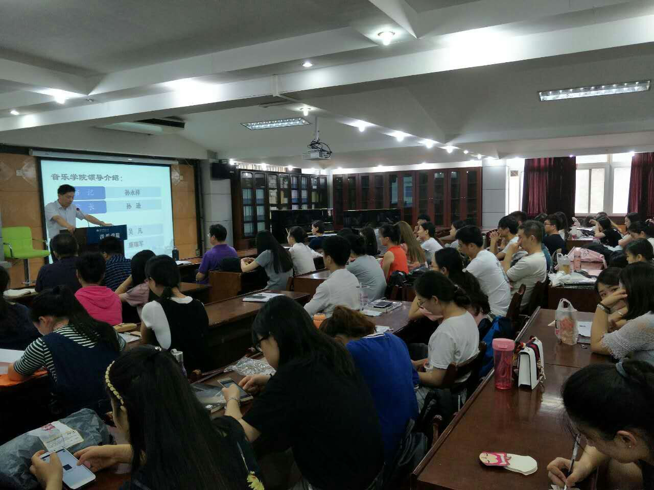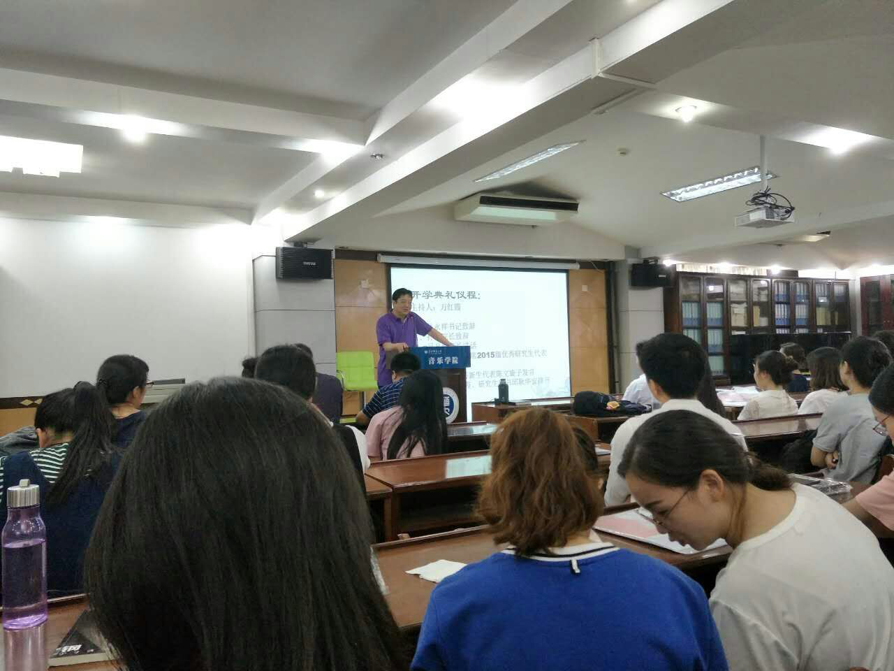 开学典礼准时开始,首先,由音乐学院党委书记孙永祥对2016级研究生新生的人数统计做简要的说明并发表重要讲话,孙书记告诉大家,作为一名研究生已具有一定程度的人生经历和生活体验,在学校期间更要追求更大的成功,既要拓宽自己的人生视野又要拓宽自己的学术视野,更不能忽略的国际视野,孙书记分享了一个在英国游学的小故事来鼓励全体同学们,从改变自己做起,才能改变世界。讲话结束后,孙书记向全体研究生表达了美好的祝愿。