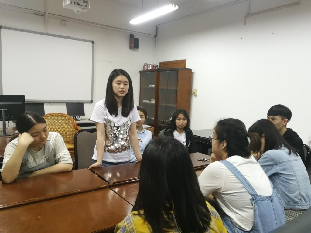 首先由团支书成玄歌发言,她结合习近平总书记五四重要讲话精神,深信“青年时代,选择吃苦也就选择了收获,选择奉献也就选择了高尚”,她表示作为一名青年大学生,一定会牢记习总书记的嘱托,继续为梦想而努力奋斗。