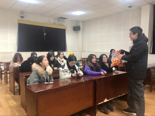 活动开始前,冯书记将特意采摘的水果分享给大家,现场气氛轻松活跃。随后,冯书记与同学们分享了自己上大学的经历,讲述了关于创立圣兵爱心社的故事,引得同学们产生了巨大的共鸣。在分享过程中,冯书记也谈及自己对于大学生活的三点感悟,总结起来就是“努力、坚持与无止境的精神追求”,令同学们感触颇深、受益匪浅。
