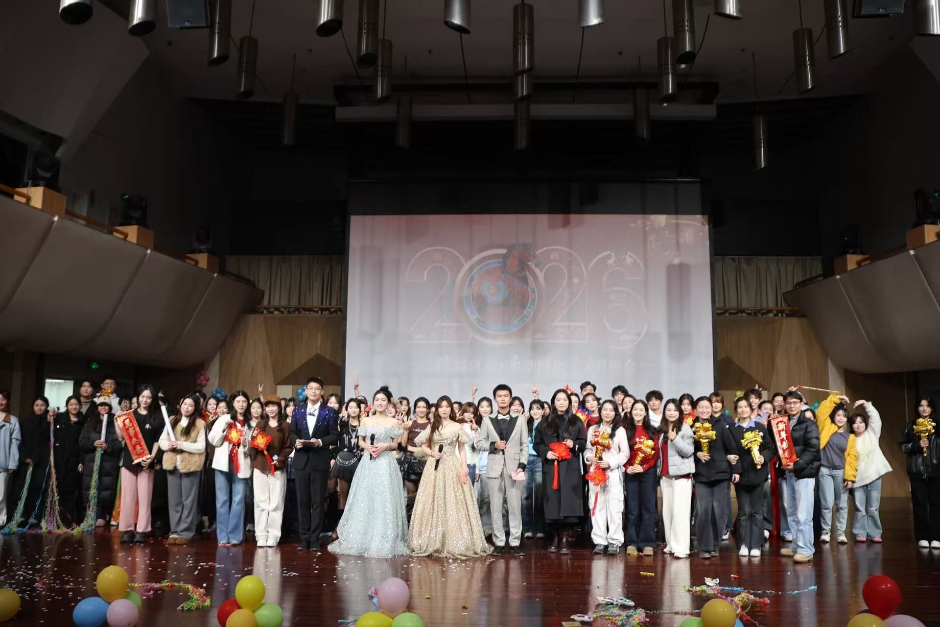 12月28日,音乐学院“经彩启元,乐动同欢”2025-2026元旦晚会在音乐厅顺利举办。本次活动由共青团华中师范大学音乐学院委员会、共青团华中师范大学经济与工商管理学院委员会主办,在温暖喜庆、昂扬奋进的舞台氛围中,师生们共同回顾硕果累累的旧岁,迎接充满希望的崭新一年。