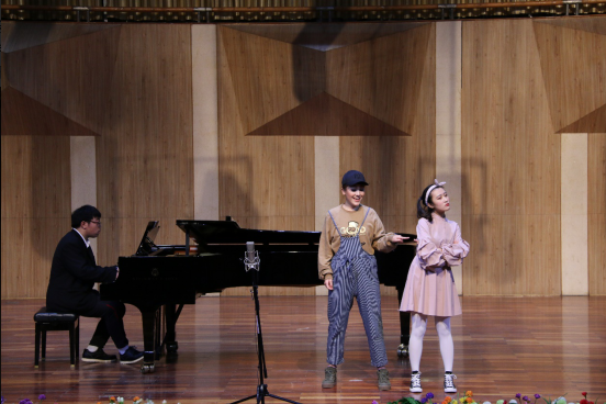 一首由张雅坤老师及其学生亓嘉祎带来的歌剧《忘掉饥饿,让我们跳舞吧》拉开了本场音乐会的帷幕。《忘掉饥饿,让我们来跳舞》 选自音乐剧《汉斯于格莱托》,这是在中国上映的第一部德国歌剧,由德国作曲家、编剧弗雷德曼·西弗里茨根据同名格林童话改编而成。师生两人不仅通过演唱更是用肢体语言表演出歌剧中故事以及人物的内心情感变化,将这首歌剧演绎的有声有色。他们将大家带入歌剧的场景,使观众们深深被其感染。