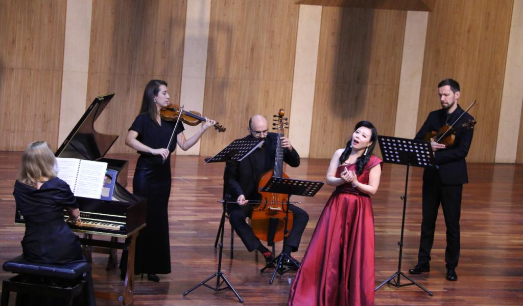 刘扬博士是当晚最后一位出场的,旅欧女高音,本科就读于华中师范大学,师从彭小玲教授,后考入武汉音乐学院,师从谭树理教授,杨金岚教授。刘扬对歌唱事业孜孜以求,博采众长,2015年以专业第一的成绩考入波兰肖邦音乐学院攻读声乐博士研究生,曾与博导波兰著名的女中音歌唱家一起在中国上海、北京多地巡演,在演唱和诠释巴洛克时期的音乐作品上做出了积极的探索,获一致好评,让大家又认识了一位歌唱新秀。本场音乐会刘扬携手四位波兰艺术家组成的伴奏小组演唱了四首作品,刘扬音色圆润甜美,音乐表达准确动人,令人耳目一新,最后一首高难度的咏叹调《风雨飘摇》获得观众热烈的掌声,再次把音乐会推向高潮。