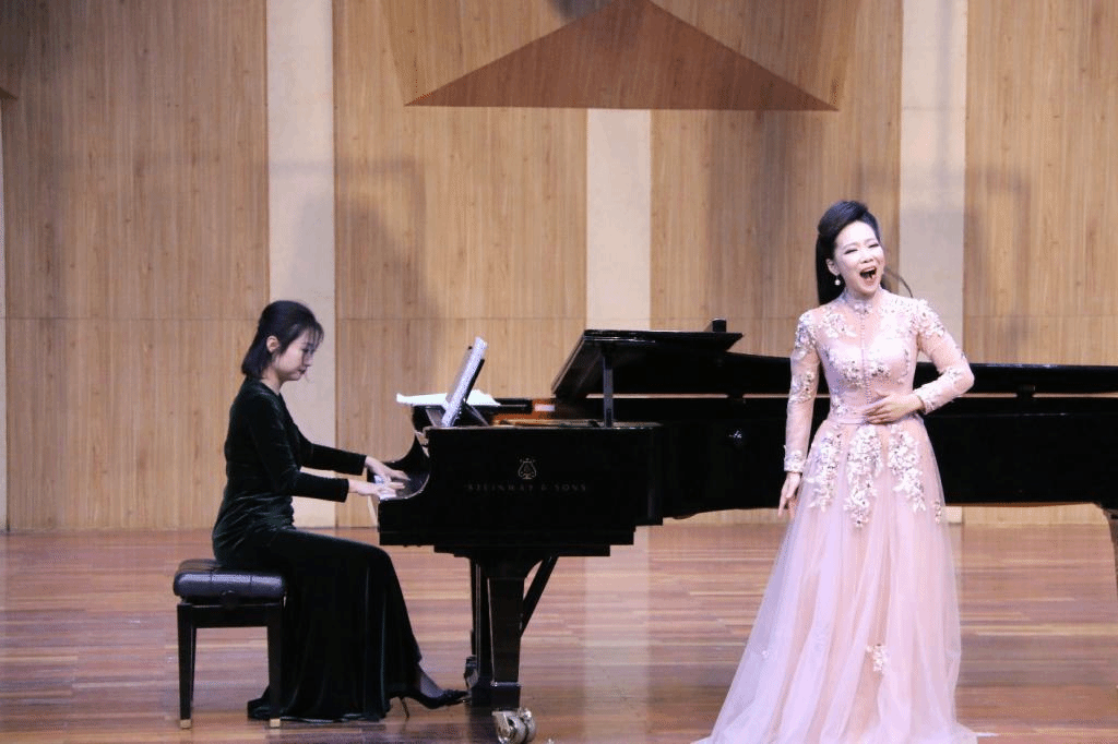 音乐会第一个出场的是韩雪静,抒情女高音,本硕均受教于彭小玲教授,硕士毕业音乐会上清亮规范,气息悠长的演唱至今余音绕耳。韩雪静在专业上对自己要求严格,不断寻求突破,2016年考入泰国吞武里大学音乐学院继续攻读声乐表演博士学位,多次在国内外声乐赛事上斩获重要奖项,现为湖北理工学院优秀青年声乐教师,发展潜力前景可观。韩雪静今晚特意演唱了一首中国作品《卜算子·咏梅》(徐景新曲),这是一首大家耳熟能详而又难度颇高的声乐作品,韩雪静处理的细腻而深情,引人入胜。