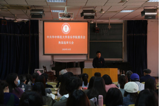 10月23日下午,音乐学院党委换届选举大会在音乐楼427教室召开,全体师生党员参加会议。会议由院长、党委副书记康瑞军主持。