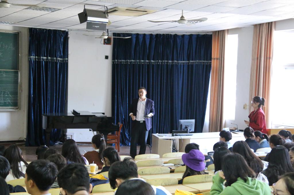 (新闻:吴子馨 摄影:汪振鑫)2018年10月27日,华中师范大学音乐学院、美术学院、体育学院共同举办的“群英荟萃·凤鸣朝阳”三院联合团干培训的第三次团课在华中师范大学音乐学院427教室举行。音乐学院党委副书记叶雷主持本次培训。17、18级音、美、体三院团委学生会全体学生干部参与本次培训。