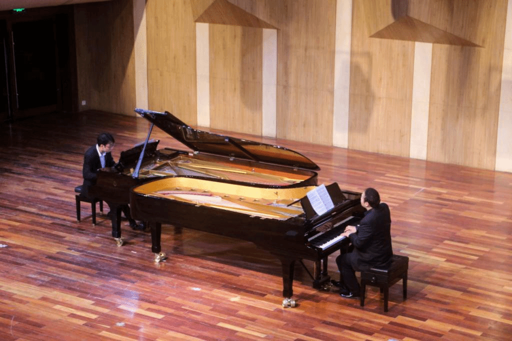 最后,由青年钢琴家孙健、廖先冀为我们带来双钢琴《匈牙利狂想曲第六首》。这首作品是以匈牙利和匈牙利吉普赛人的民歌和民间舞曲为基础,进行艺术加工和发展而成的,因而都具有鲜明的民族色彩。这些乐曲结构精炼、乐思丰富活跃,音乐语言与音乐表现方法同匈牙利乡村舞蹈音乐和城市说唱音乐有密切联系,乐曲的形式虽然不时的变化,可是音乐形象始终鲜明而质朴,体现了自然美和艺术美的完美统一。将音乐会的气氛推向高潮。