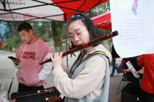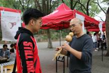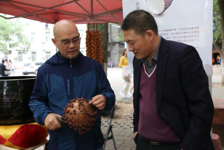 在华中师范大学教学节的背景下,本次“知·音”活动,既是一次乐器科普活动,也是一次别开生面的教学活动。活动共分为表演区和展览区。共设立八个展览摊位供大家轮流观赏,从历史悠久的的民族乐器到欧洲传入的西洋乐器,从慷慨激昂的管乐到抒情婉转的弦乐,各式各样的乐器加上精彩绝伦的演出,吸引了无数学生及老师驻足观赏。更为精彩的是,音乐学院的赵洪啸老师带来了一大批他的自制乐器并且亲自为观众们演示,令人叹为观止。