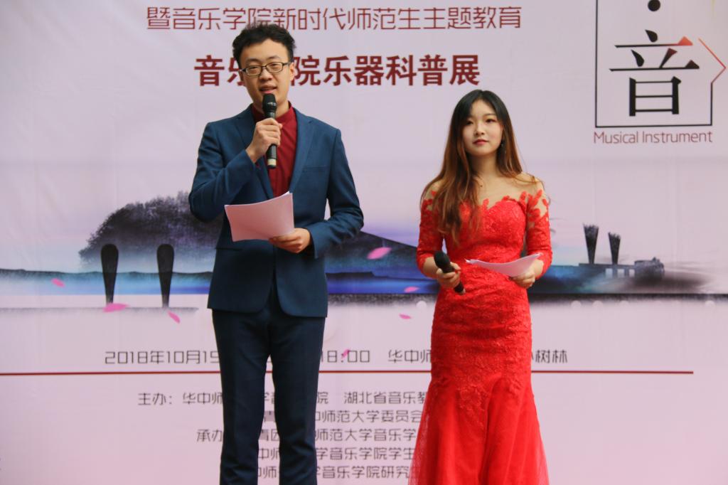(新闻:胡艺璇 摄影:叶晓婷 程哲)2018年10月19日下午16:00—18:00,“华中师范大学教学节音乐学院特色活动”——“知·音”暨音乐学院新时代师范生主题教育第二届音乐学院乐器科普展,在东区小树林隆重举行。本次活动由华中师范大学音乐学院、湖北省音乐教育实验教学示范中心、华中师范大学校团委举办,共青团华中师范大学音乐学院委员会、华中师范大学音乐学院学生会、华中师范大学音乐学院研究生会承办。出席此次活动的领导有:音乐学院副书记叶雷、副院长吴凡、校团委副书记陈娟、音乐学院团委书记吴文劼、音乐学院赵洪啸老师以及部分院系的团委书记等。