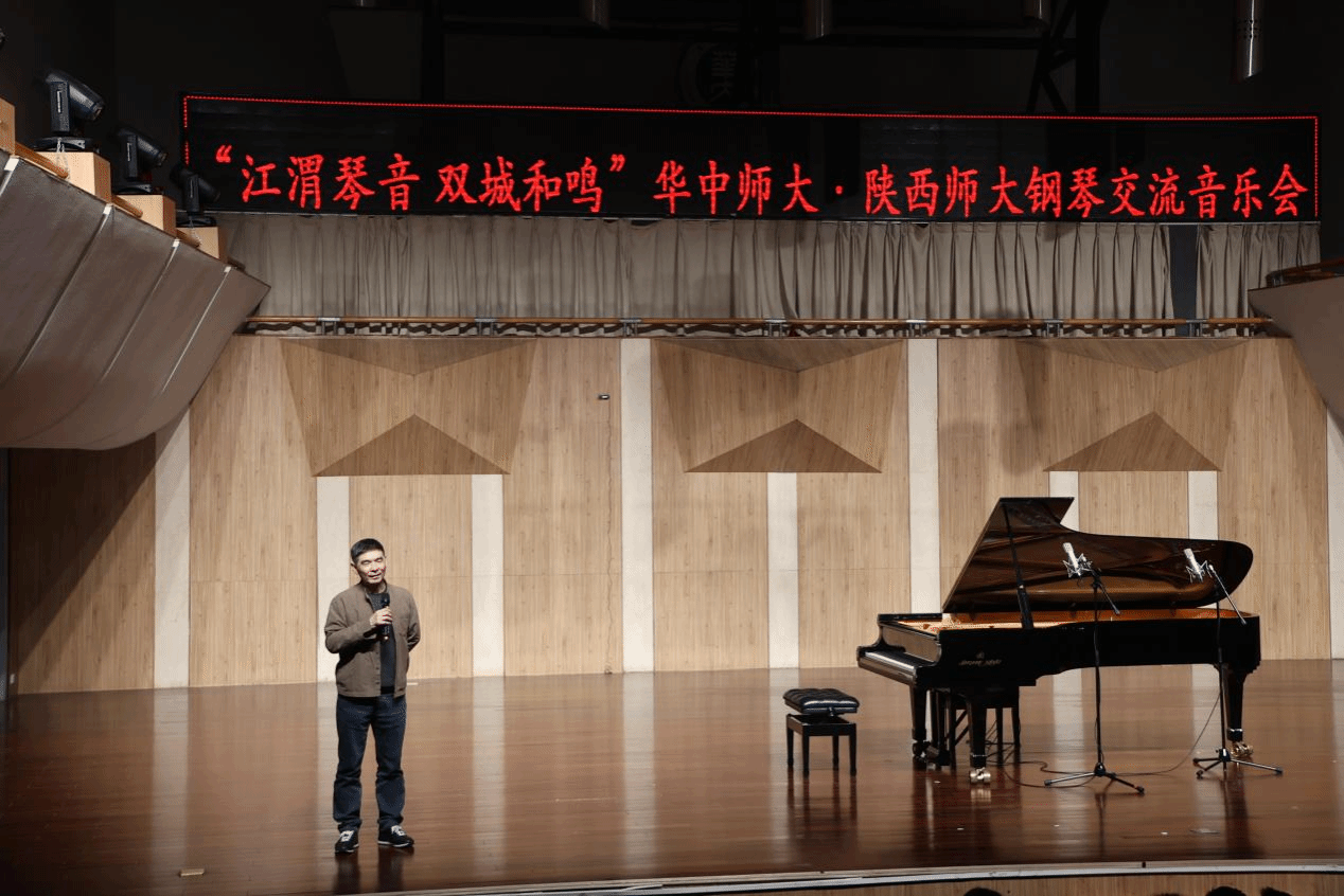 本次音乐会以“江渭琴音,双城和鸣”为核心主题,“江” 撷长江灵秀,承载着华中师大植根荆楚大地的楚风雅韵;“渭” 纳渭水厚重,彰显出陕西师大立足三秦故土的文化底蕴。这场校际钢琴交流,既是两校艺术教学成果的集中展示,也是地域文化交融的生动实践,更让原创音乐力量在交流中绽放光彩。