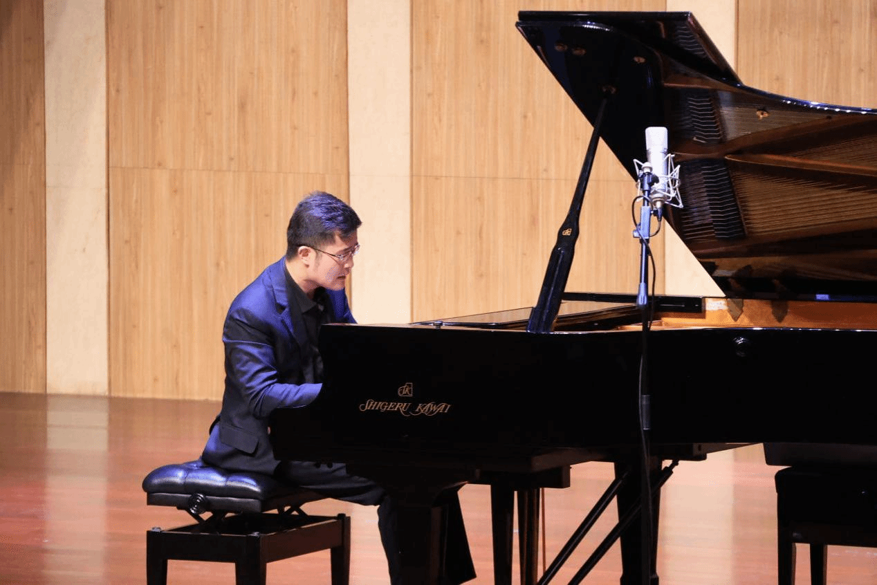 指尖跃动,乐声启幕。华中师范大学张晨率先登台,以麻书豪《楚之祭》拉开音乐会的帷幕。乐曲意境深沉悠远,气韵苍劲厚重,灵动的琴音将楚地的历史底蕴与人文诗意娓娓道来,让现场观众沉浸式感受楚文化的独特魅力。随后,张晨老师继续演绎《李斯特 B 小调钢琴奏鸣曲》,恢弘的气势、宏大的结构,让浪漫主义的激情与哲思在琴键上层层铺展,完美呈现出作品的艺术张力与思想深度。