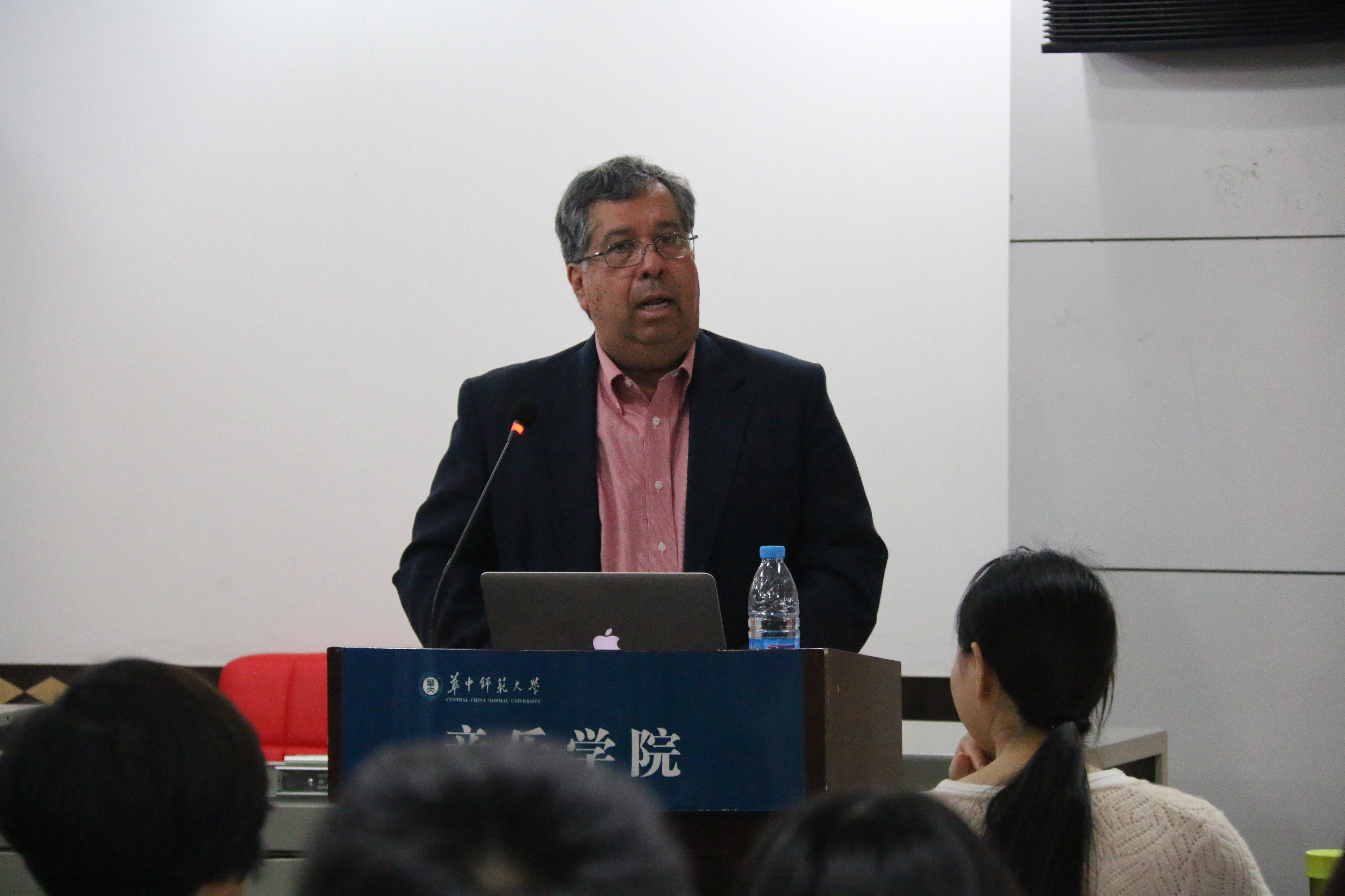 (新闻:徐思敏 摄影:余芷璇)2017年4月26日(周三)上午9:00,在华中师范大学音乐学院323大会议室,来自美国密歇根大学音乐学院的卡洛斯·罗德圭兹(Carlos Rodriguez)教授就如何提升学生的音乐素养这一话题,为华中师范大学音乐学院的师生们做了第二场精彩的学术报告。音乐学系主任刘畅副教授担任了本场讲座的主持人和翻译。