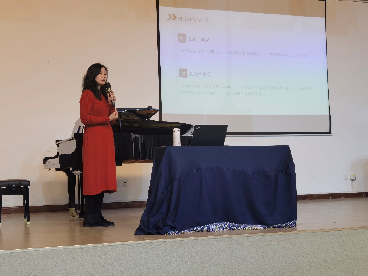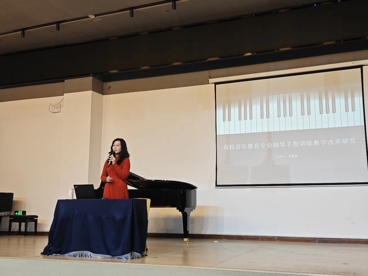 2023年1月3日下午14:00,华中师范大学音乐学院邀请武汉音乐学院青年教师方紫琪于音乐学院727教室开展“音乐教育专业钢琴手指训练教学改革研究”讲座,此次讲座作为基层教学组织系列活动之一,由钢琴系主任凌俐副教授主持,我院及中国地质大学、江汉大学等兄弟院校师生聆听了本场讲座。