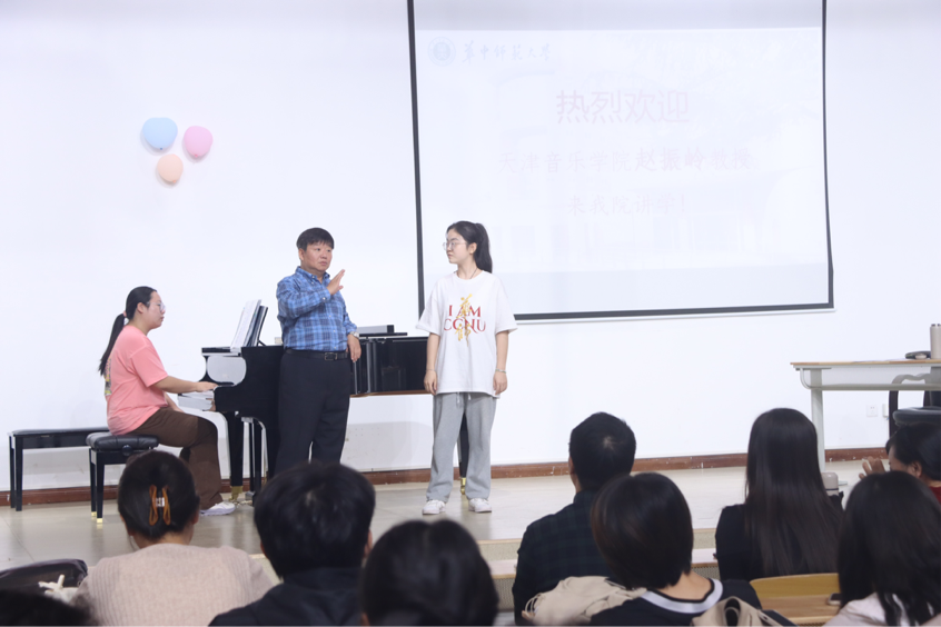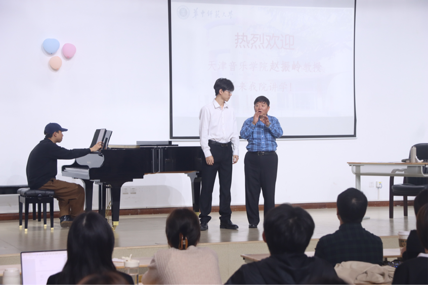 2023年10月27日,华中师范大学音乐学院“陆华柏音乐名家大讲堂”第二十三期•系列讲座《谈中国声乐作品的审美与艺术表现》在727教室成功举办。担任此次讲座的专家为著名男高音歌唱家赵振岭教授,原天津音乐学院民族声乐系主任,硕士生导师、天津市教学名师院教学带头人。中国民族声乐艺术研究会副会长,中国声乐家协会主席团执行主席。《歌唱艺术》《天籁》编委。本次讲座由声乐系承办,音乐学院教师与学生参加。