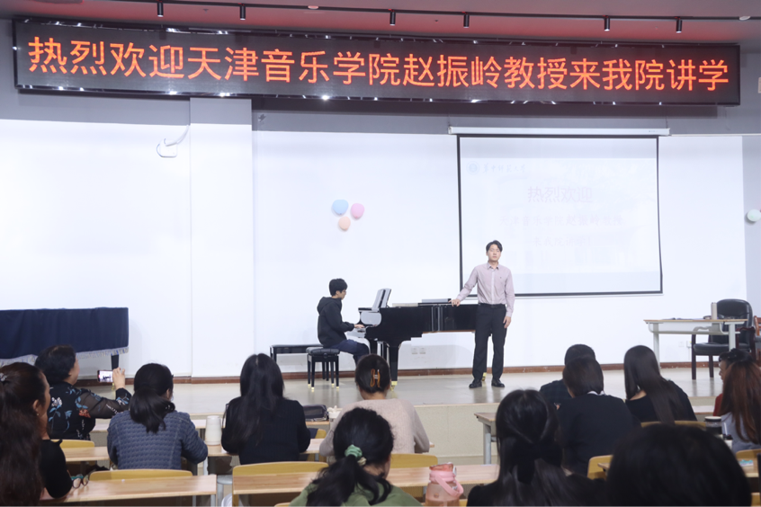 在本场讲座中,赵教授针对每位老师和学生的演唱逐一进行了点拨,不厌其烦的示范,针对学生在诸如气息、咬字、发声和共鸣等方面存在的一些问题进行了重点的阐述,传授给了老师和同学们不少实用的演唱技巧和先进科学的理念,现场气氛浓厚。