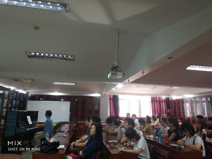 代百生教授从四个方面详细讲解了“韵”从何来、如何“以韵传神”。首先,演奏者要理解中国钢琴音乐中旋律的腔韵。中国传统音乐的单声性旋律特点决定了的中国音乐的审美定势是注重旋律,讲究旋律的优美和回味无穷。在中国钢琴音乐中旋律的使用上,主要有“移植”(如《绣金匾》、《二泉映月》)、“创编”(如《序曲第二号‘’流水‘’》)和“创作”(如《牧童短笛》)三种手法。如果是“移植”、“创编”而来的旋律,我们应多听多唱原曲,做到“曲不离口”;多多揣摩原曲的情感,还原原曲的意境。对于“创作”型的乐曲,我们要仔细体会其中蕴含的“中国味道”,研究作曲家是如何创作的,如何在旋律中体现“中国风格”。