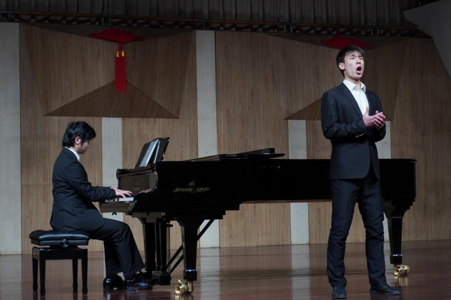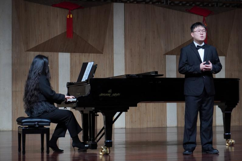 方浩宇同学的《献词》表演向大家展示了男中音的优美音色。这首作品是舒曼作为礼物在自己的婚礼上的献给克拉拉的,对她最真挚的爱都细腻的表现在每一个音符上,同时也将对大自然与生活的向往之情展现的淋漓尽致。