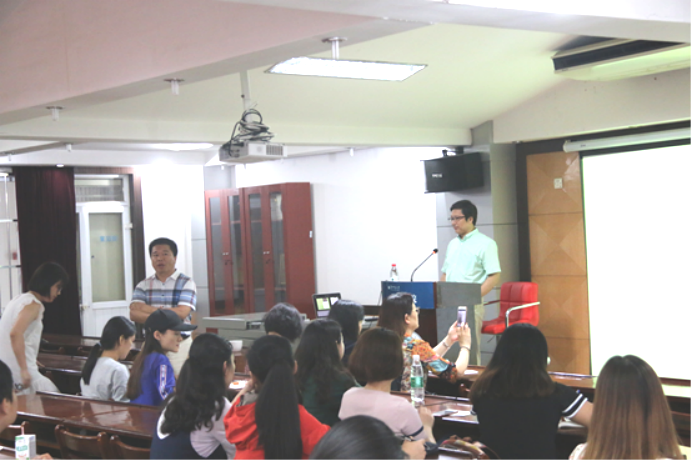 讲座最后,学生向代教授提出问题,如何将自己的主观感受在书写表达上显得学术化。代教授回答道,论文内容可以表达自己的主观感受,但是不宜过多,几句话带过即可,而且不需要将自己的感受都用科学依据证明。最后,康院长希望学院的师生们在书写论文时结合代教授提到的几点要义,在阅读时做到不动笔不读书,从而提高自身素质和能力。讲座结束后,代百生教授和老师们合影留念。