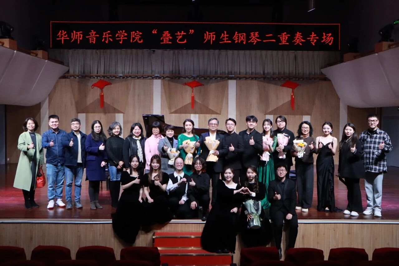 3月14日晚,国内知名钢琴二重奏组合“叠艺”的董海珠、李世卫携手上海音乐学院学生陈烜龙、洪振耀、董炫灵、刘睍飞与我院学生钟婉仪、初鼎炆、罗祉伊、何欣桐、李佳妮、张妤萱、何颖、李昕怡于华中师范大学音乐学院音乐厅,以“东西话琴音,传承语当代”为主题,用双钢琴与四手联弹的多元形式,开启一场跨越时空的音乐对话。