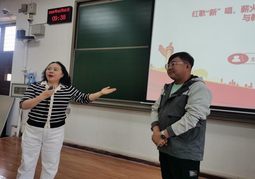 活动伊始,周燕从“五育并举”教育方针切入,深入阐释美育在新时代基础教育中的核心价值。通过解析红歌的历史脉络与文化内涵,她强调红歌不仅是革命精神的载体,更是传承红色基因、厚植家国情怀的重要教育资源。因此,音乐教师应立足学科特色,将红歌教学与德育、美育有机融合,让学生在艺术熏陶中坚定理想信念。