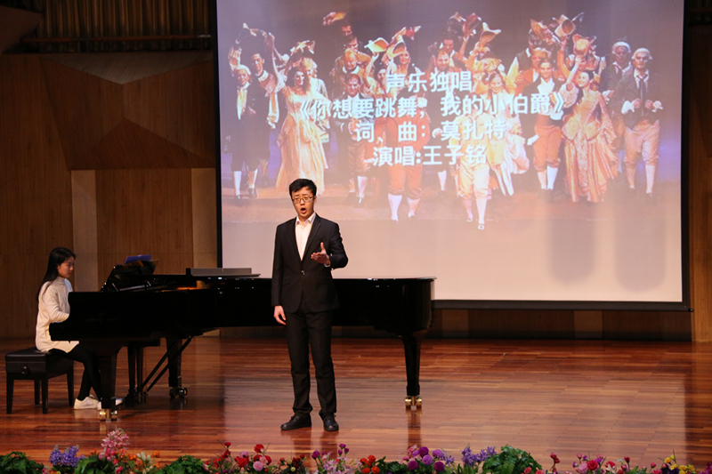 男声独唱《你想要跳舞,我的小伯爵》选自著名歌剧《费加罗的婚礼》,该曲出现在歌剧第一幕,表现了主角机智、临危不惧镇定自若的神态,诙谐而又幽默;琵琶独奏《倒垂莲》流畅委婉,犹如珠帘垂落,错落有致地响起。