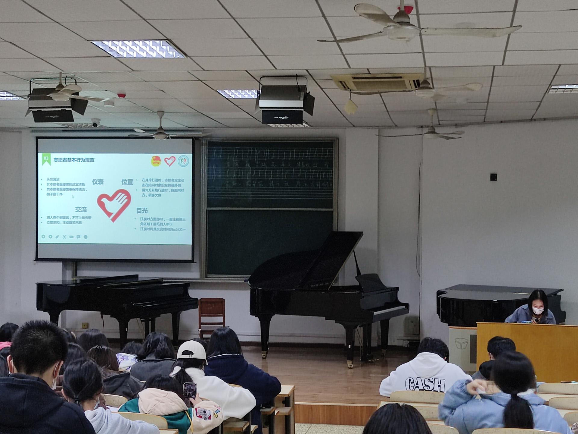 11月13日,华中师范大学音乐学院在427教室为2022级本科生开展志愿者志愿服务培训。本次培训邀请华中师范大学青年志愿者联合会成员杨丽丽作为主讲人,为音院学子们普及志愿服务知识,呼吁更多的同学加入到青年志愿者的行列中来。