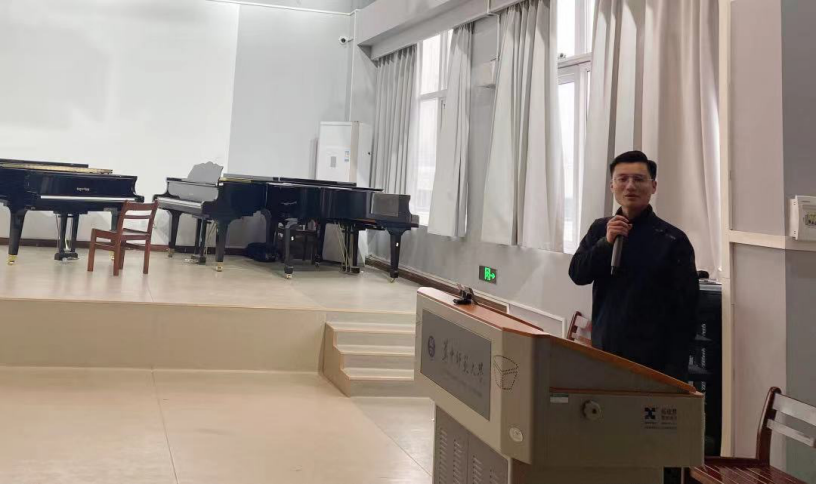 活动伊始,研究生辅导员陈龚泽祖对本次活动的重要意义表示肯定,陈老师强调,桂音文艺沙龙是开展思想政治教育的重要渠道,活动旨在充分发挥我院学子专业特色,构建特色美育格局,为大家提供更多锻炼和展示自己的平台,丰富同学们的课余生活。
